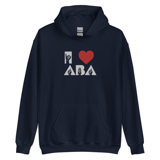 Embroidered I <3 ABA ASL Hoodie- Black Font